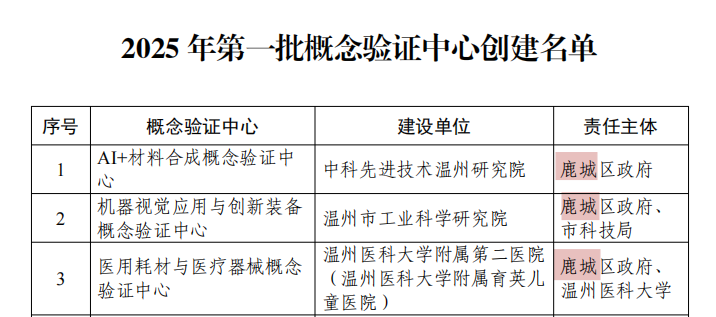 喜报 | 2025年全市首批!中科先进技术温州研究院入选概念验证中心